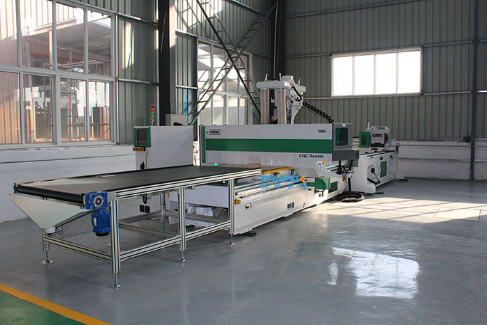 10、工作時(shí)間:可以二十四小時(shí)不間斷工作,即使晚上也可以加班,因?yàn)闄C(jī)器對(duì)光線的要求不高,工人也只是在電腦上操作,極大的提高了工廠的生產(chǎn)能力,實(shí)現(xiàn)了一臺(tái)數(shù)控木工開料機(jī)頂多臺(tái)開料鋸的可能。