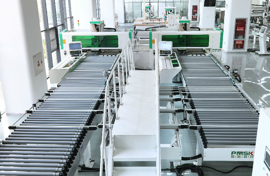 品脈數(shù)控智能鉆孔單元,是由3~4臺通過式數(shù)控六面鉆、六面鉆定位機(jī)、高清讀碼器、自動輸送輥臺及智能控制系統(tǒng)組成。品脈智能鉆孔單元,操作簡單,自動化程度高,人工只需放板,讀碼器自動讀取板件上的二維碼加工信息,控制系統(tǒng)自動分配板件至六面鉆孔中心,由六面鉆完成板件六面孔及正反面槽的加工,整套連線只需配備2個工人即可運(yùn)作,品脈數(shù)控-三機(jī)連線-智能鉆孔單元(10小時)可實現(xiàn)3200~3800塊板件加工,是目前中大型家具廠首選的鉆孔設(shè)備。lling Unit Advantage